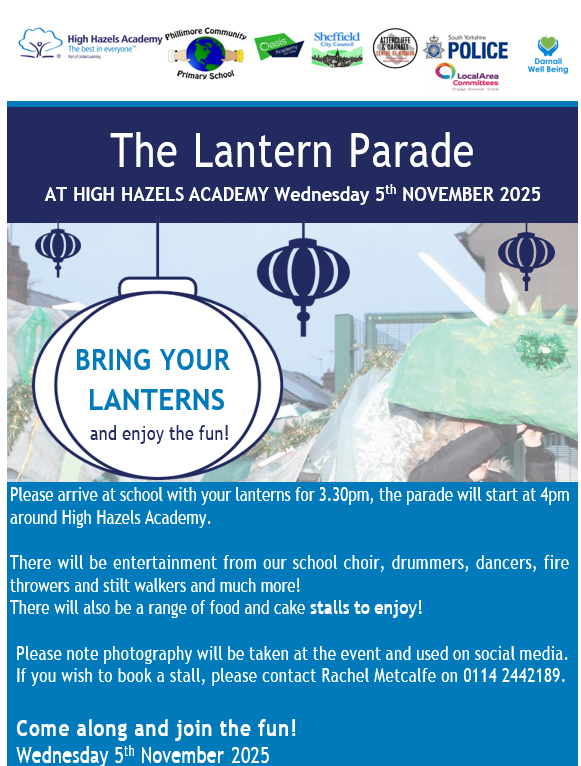 We will hold our annual lantern parade on Wednesday 5th November! Bring your lanterns and enjoy the fun. Please arrive at school with your lanterns for 3.30pm, the parade will start at 4pm.
