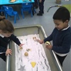 The children explored a magical winter wonderland sensory tray, filled with a train, little houses, shiny baubles, and soft “snow.” This hands-on activity encouraged imaginative play, sensory exploration, and lots of storytelling as the children discovered and created their own winter scenes.