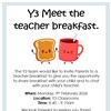 The Y3 team would like to invite Parents to a MEET THE TEACHERS BREAKFAST to give you the opportunity to share breakfast with your child and to chat with your child’s teachers.