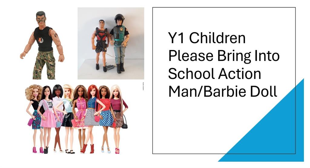 This week Y1 children are going to begin reading traction man for their writing unit. For part of the unit, we are going to be role playing with dolls. If you have an action man or barbie type doll can your child please bring this into school. Please bring the dolls in before Friday and they will be returned home next week, after the unit.
